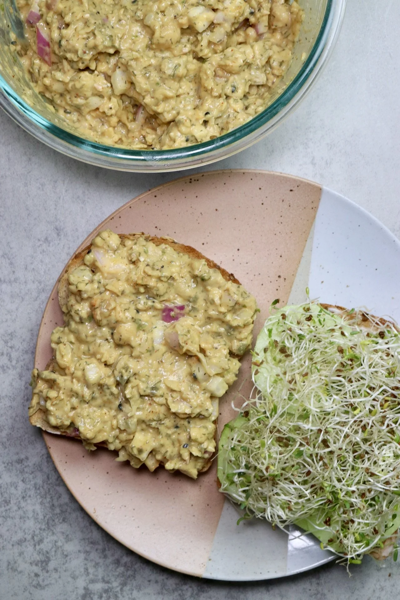 I love a good veggie sandwich! This Chickpea Salad Sandwich is no exception and will always be one of my favorites. It’s creamy, tangy, and gets a delicious crunch from fresh cucumber slices and alfalfa sprouts. With capers, dill, and a sprinkle of savory Furikake seasoning, this simple recipe is quick enough for weekdays and tasty enough for any occasion. Toast up some multigrain bread and dig in.
